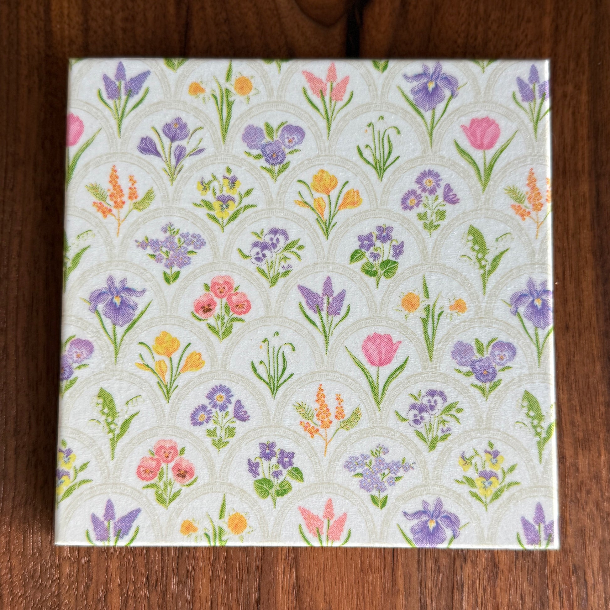 This delightful ceramic trivet bursts with an array of botanicals in pinks, yellow, orange, and purple. At 5 3/4 inches square, it’s handcrafted to resist heat and moisture. Easy to care for—just a quick wipe with a damp cloth. Its cork base protects your surfaces.