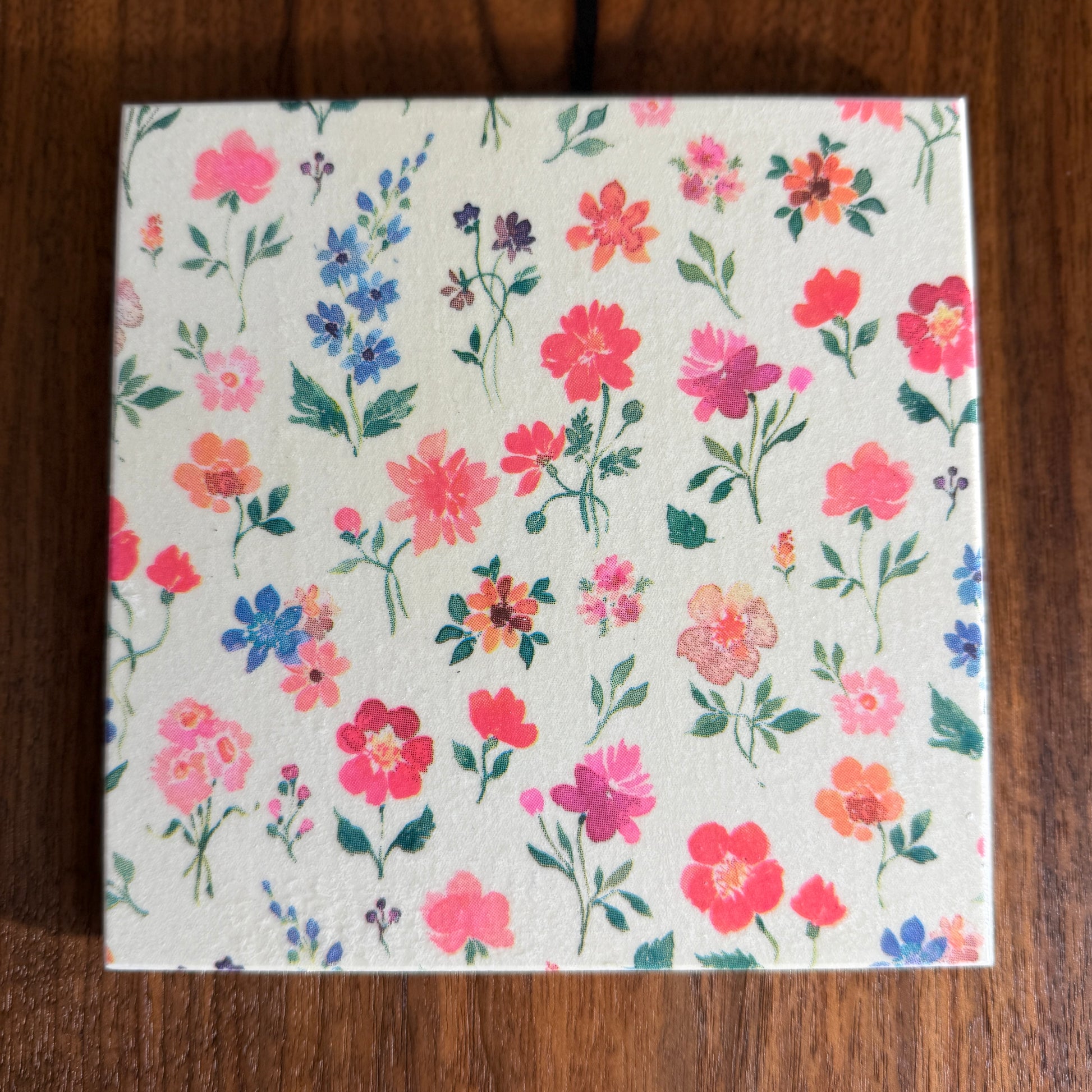Brighten your kitchen with this lovingly handcrafted ceramic trivet, where a whimsical garden of spring posies blooms in pink, coral, blue, purple, and green against a gentle cream base. The cork backing keeps your furniture safe from damage & the functional surface is heat & water resistant. At 5¾ inches square, this charming piece proves that the most practical things can also be the most delightful.